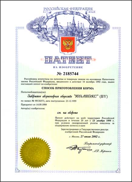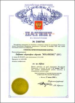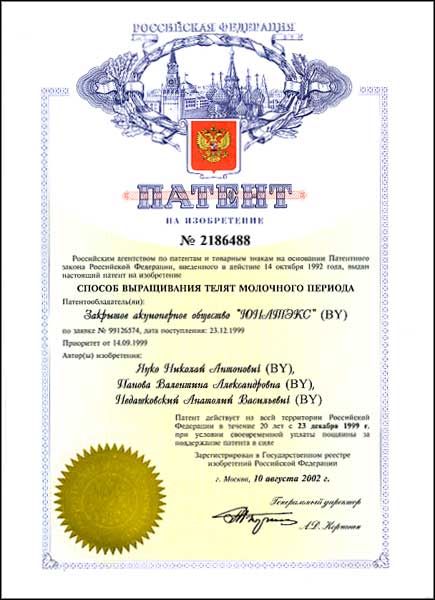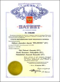 Способ приготовления корма от 14.09.1999 | Способ выращивания телят молочного периода от 14.09.1999 |