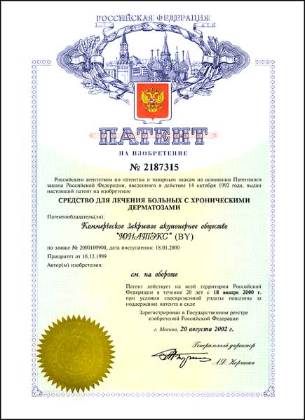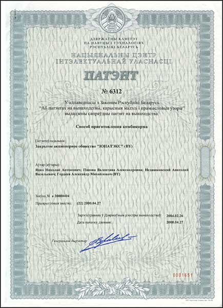 Средство для лечения больных с хроническим дерматозом от 16.12.1999 | Способ приготовления комбикорма от 16.06.2000 |